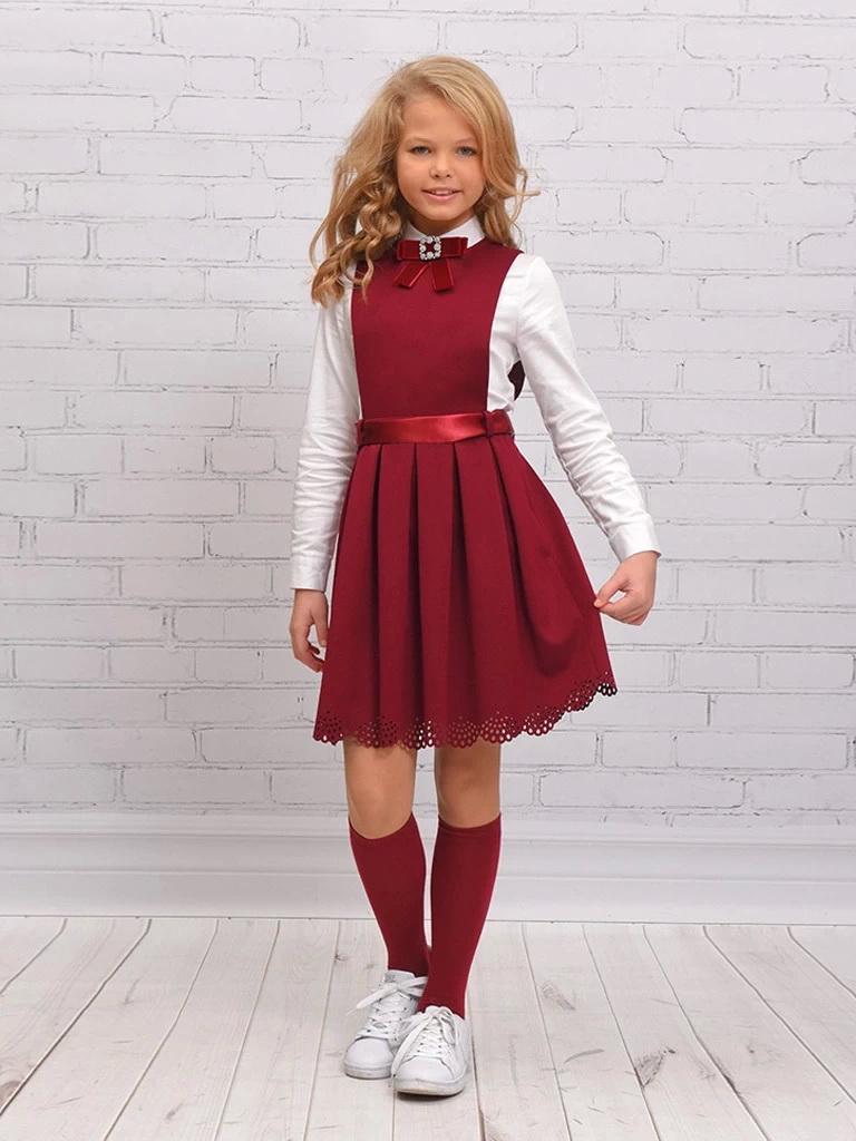 Однотонный, очень красивый сарафан для девочек младшего и среднего возраста.